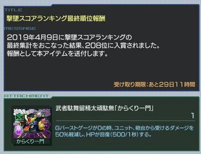 今回のランキングから500位までに機体が報酬であるので、厳しくなりそうですね。