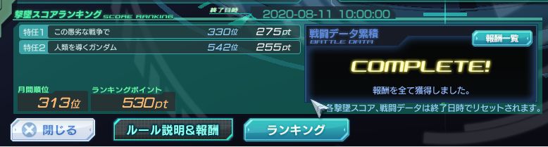 7月後半撃墜スコアランキング終了。お疲れさまでした。