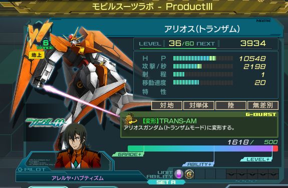 アリオスガンダムも一応G10にしたんですが使ってもスコアあんまし縮まりませんでした。