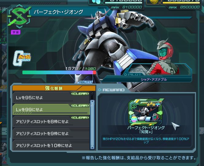 Sの雲隠れ機は現状厳しいですが好きな機体なので99にしたい!