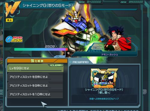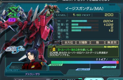 10枠G11Lv99にはしてみたいのですが、それより先にする機体あるからなー。
