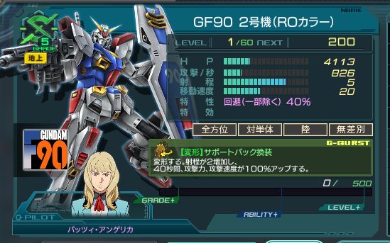 次に「気に入っている機体の99アビを取る」ですが、ガンダムX、リックディアス共に99アビは「一発逆転+」……。