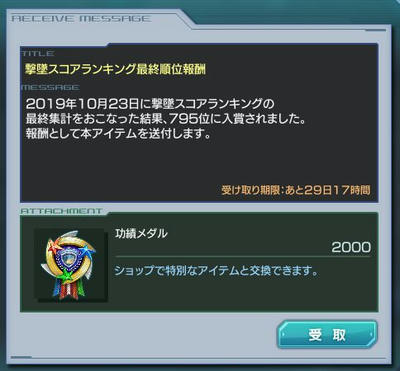 最終順位は1004位だったのですが、功績メダル100の差やから
